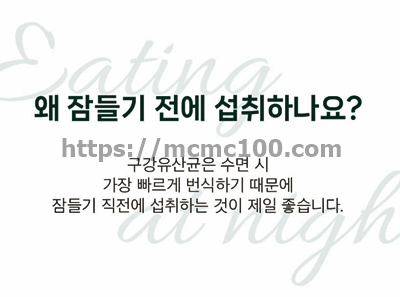 - 섭취 시점: 양치 후 잠자기 직전에 복용해야 입속에 유익균이 오래 머무를 수 있습니다.