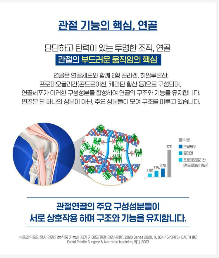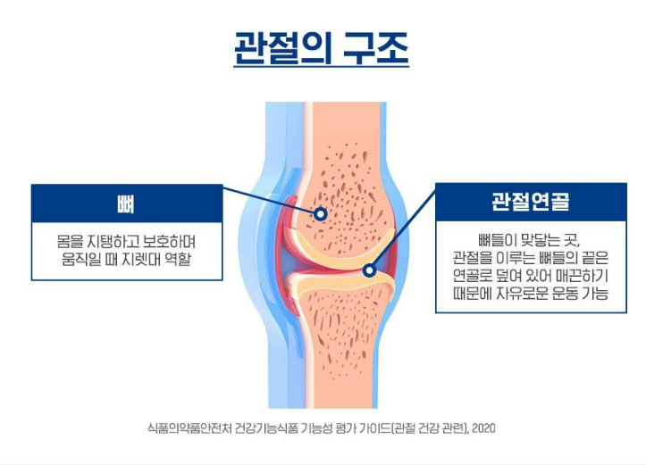 - 콜라겐: 관절을 구성하는 주요 성분으로, 관절의 유연성과 탄력을 유지합니다.