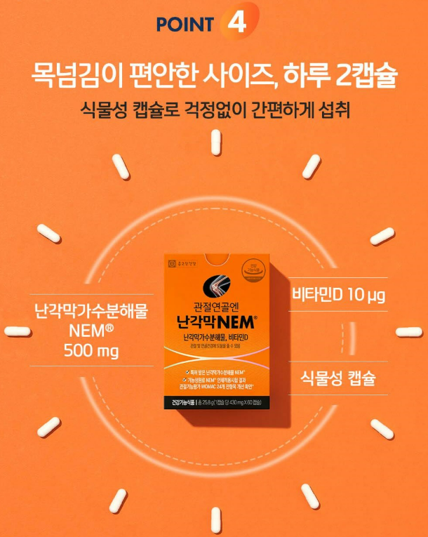 난각막가수분해물(NEM) 영양제: 관절 건강의 새로운 해법