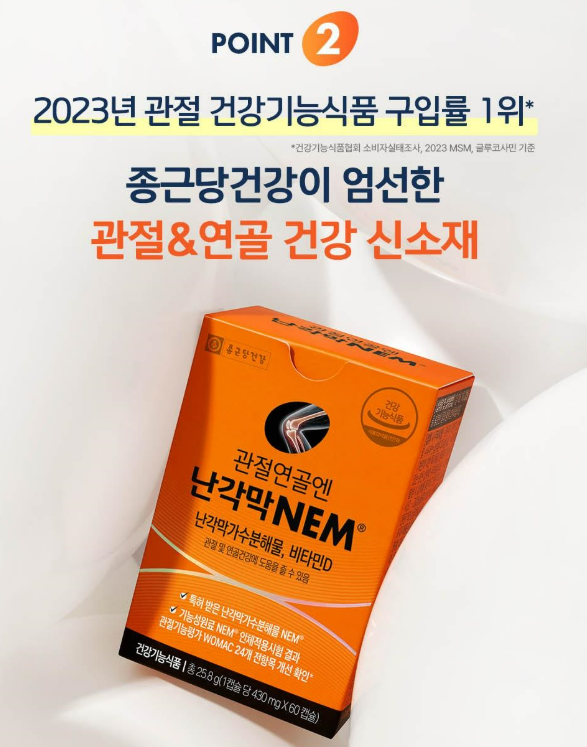 종근당 건강 - 관절연골엔 난각막 NEM 제품 바로가기