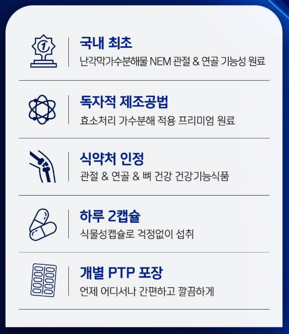- NEM 원료를 사용한 관절 건강 보조제