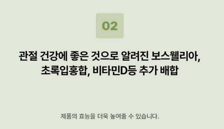 - 히알루론산: 관절 내 윤활 작용을 돕고, 관절의 움직임을 부드럽게 만들어 줍니다.