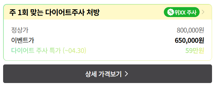 | 패키지 병원 (진료+주사) | 70만 원 이상 | 관리 프로그램 포함 |