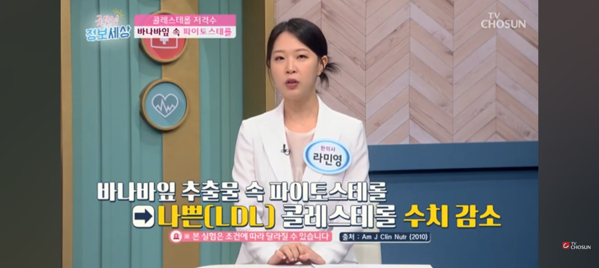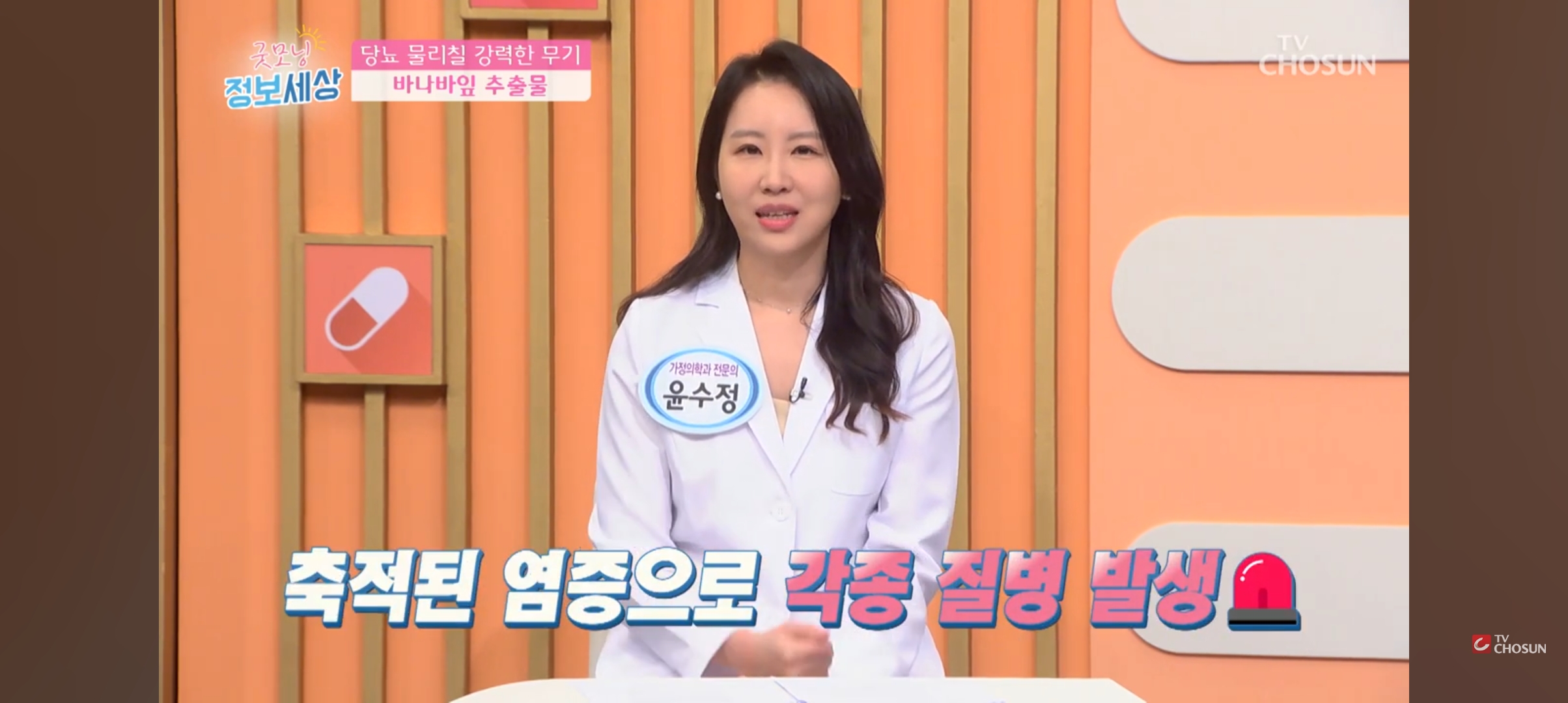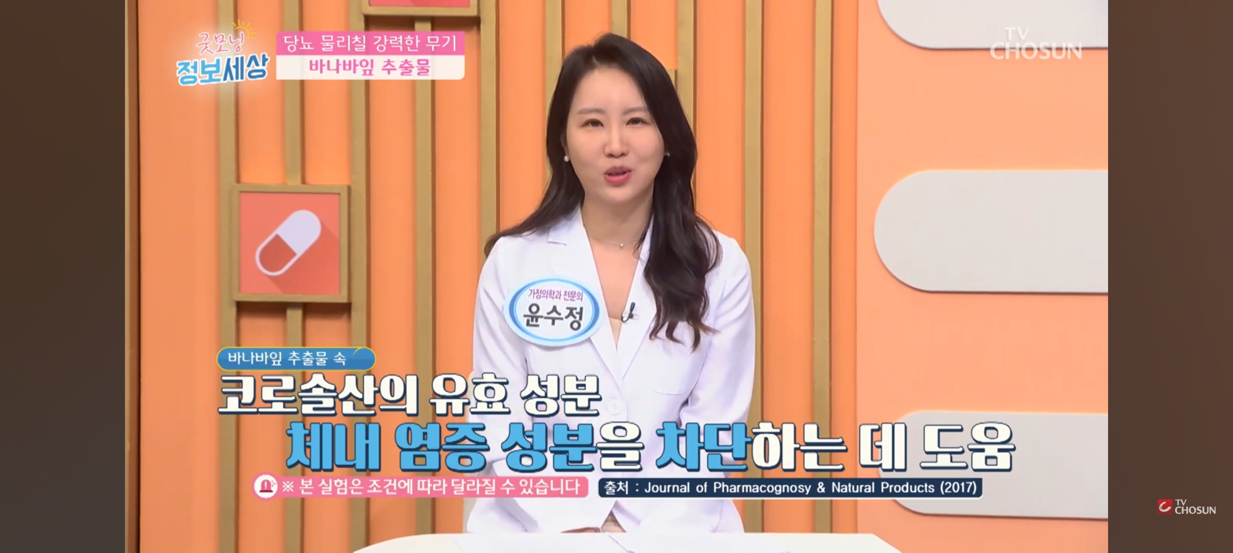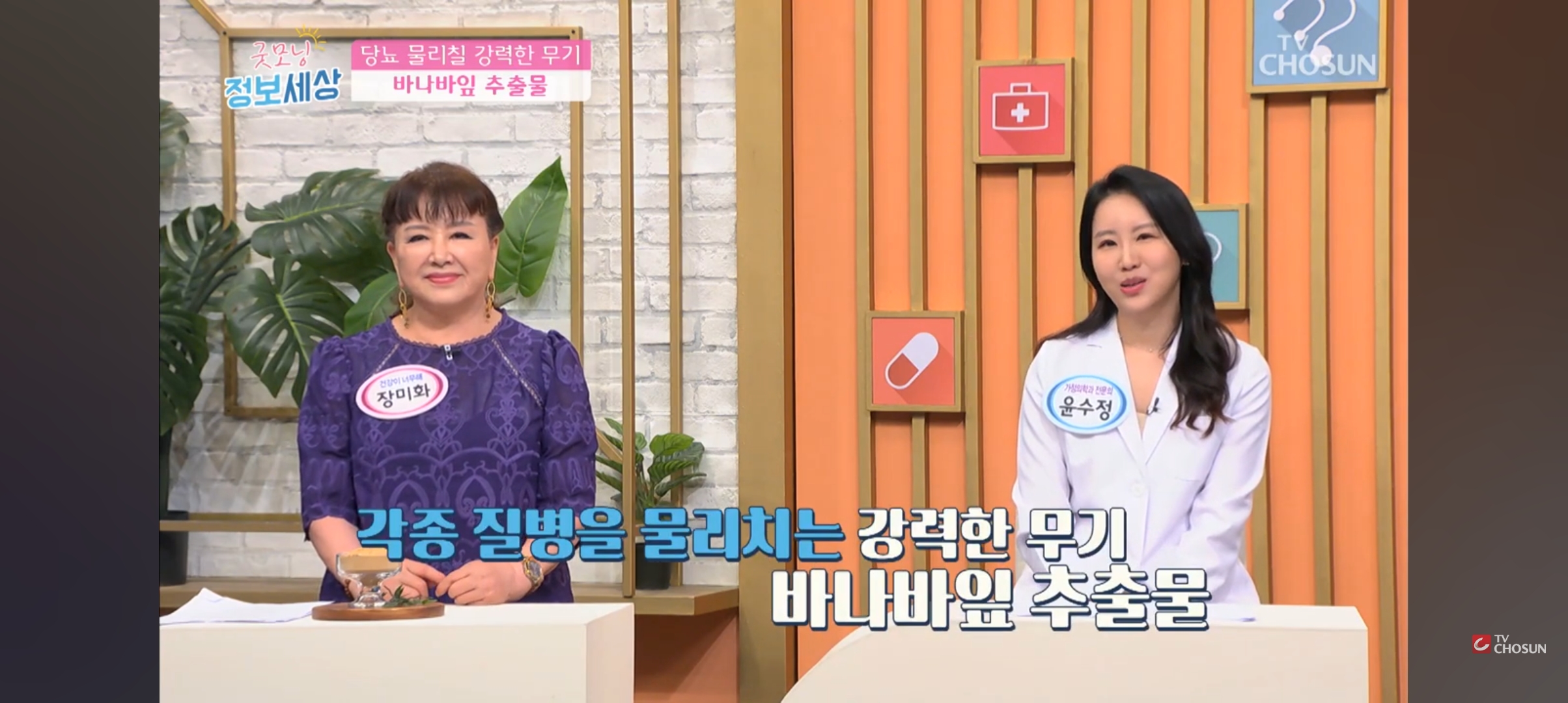 아래 영상은 TV조선 건강 정보 프로그램 '굿모닝 정보세상'에서 전문의가 직접 바나나잎이 당뇨와 혈관 건강에 어떻게 작용하는지를 설명한 자료입니다.